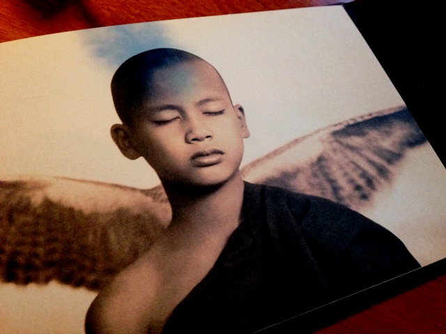 真っ白な着物に羽根のカーブを型どった金の刺繍の見事なこと。
