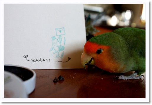 昨日 ヒトポストマン が インコポストマン を 運んできてくれた。