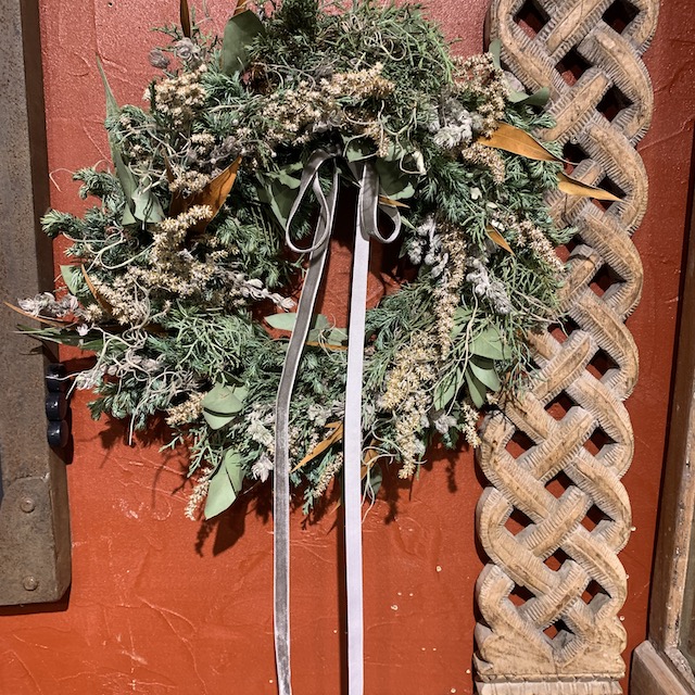 使用花材:ブルーアイス ユーカリ ボールバード ヒバ2種