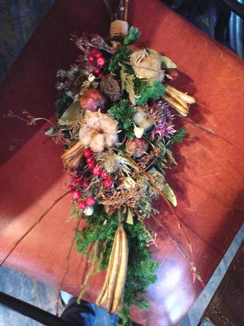 使用花材 : ヒバ ユリの実 りんご などいろいろドライのもの。