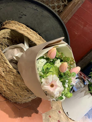 使用花材:チューリップ(マンゴーチャーム) ラナンキュラス (ラックスアリアドネ)