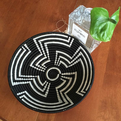 ルワンダの女性たちが編み上げた鮮やかな色彩のバスケット。