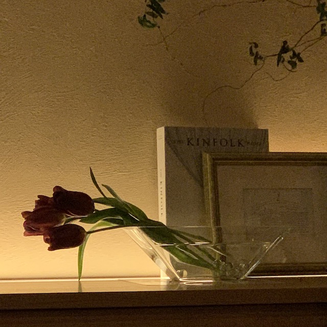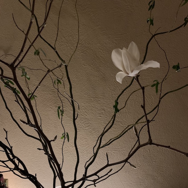 夜___そして友人はこの松(ドボンと花瓶に生けただけ)が極楽鳥に見えるって〜(嬉)