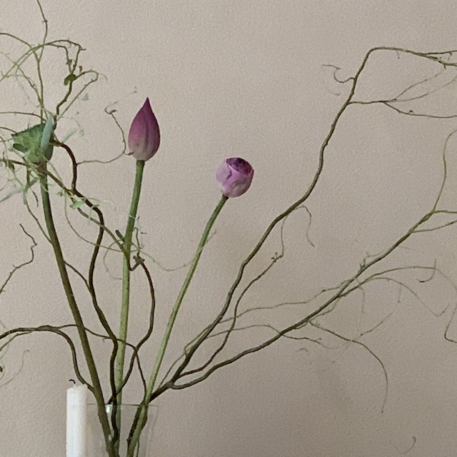 線の細いカーヴの効いた草花はアレンジが難しい。