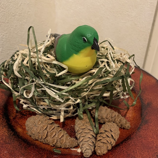 ただいま玄関で番犬ならぬ番鳥として大活躍。