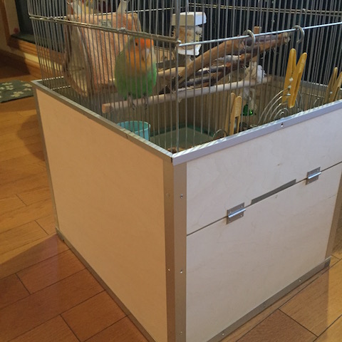 mboniさんのケージを床に直接おくのはちょっと低すぎるし