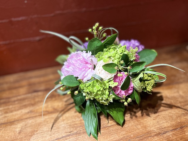 使用花材:芍薬 spバラ アジサイ トルコキキョウ ジューンベリー アルケミラモリス