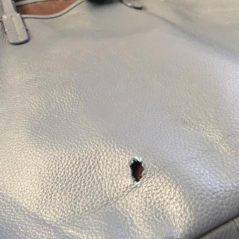 下:久々使おうと出したトートバッグが見るも無惨な大穴が。。。。