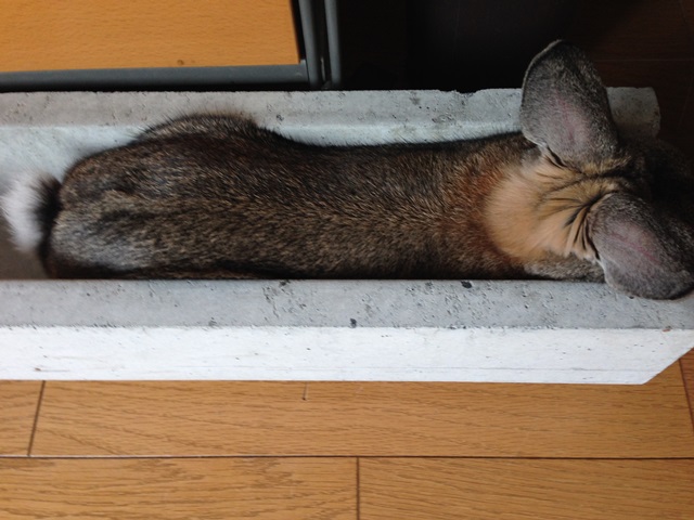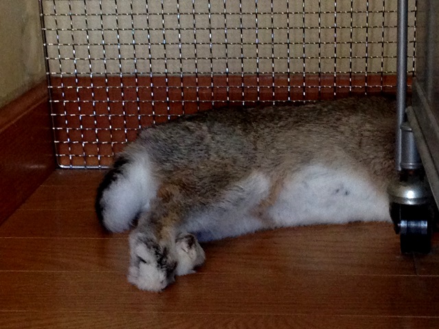 仕方ないので邪魔されないように場所を変えて隠れて寝てるつもりも 頭隠して尻隠さず。。