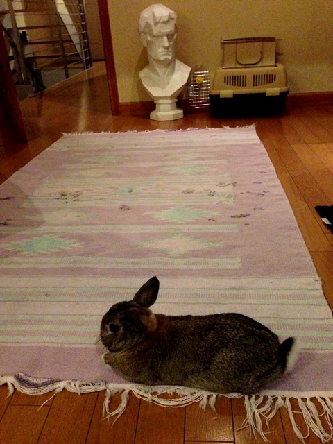 齧られていい用のぼろラグの上でリラックスタイム。