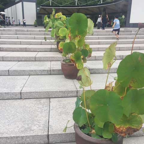 いたるところに蓮の鉢が。