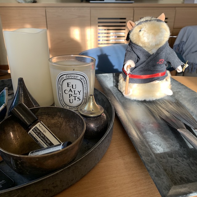 カバーをかけると大人しくなりヒュッテに移動。(ちらっとカバーを挙げてみるのが面白い)