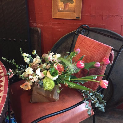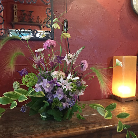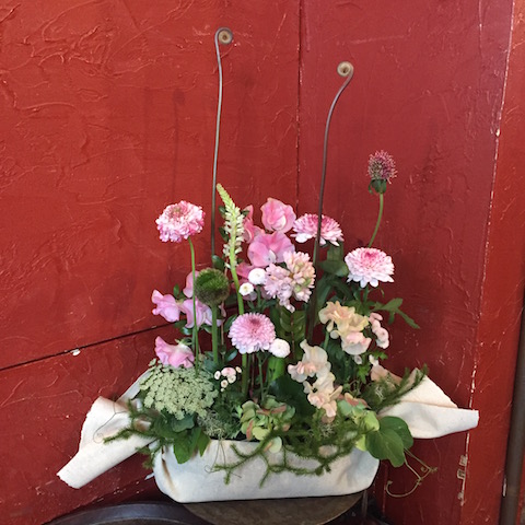 使用花材:ユーカリ(3種類) 紫陽花 ブルーファンタジア ジネンジョ リボン・ラフィア