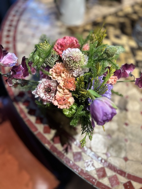 使用花材:チューリップ ラナンキュラス スカビオサ spバラ トルコ桔梗