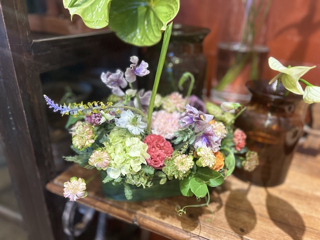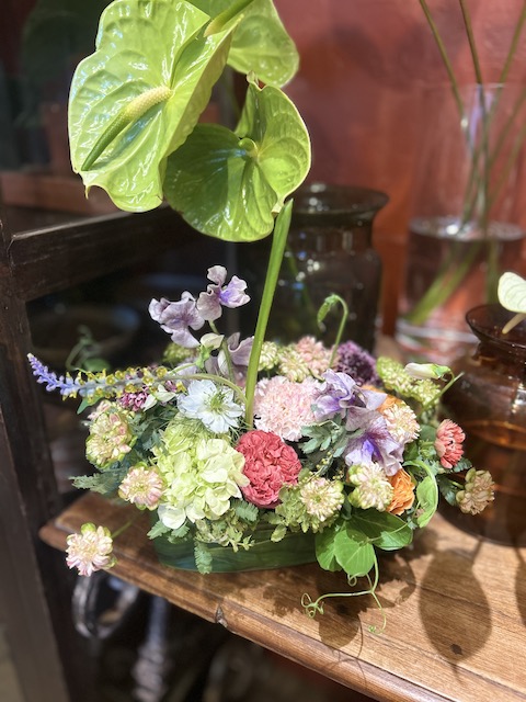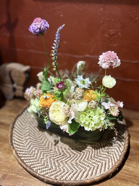 使用花材:アネモネ ニゲラ スカビオサ ラケナリア 豆の花 アカシア スイトピー