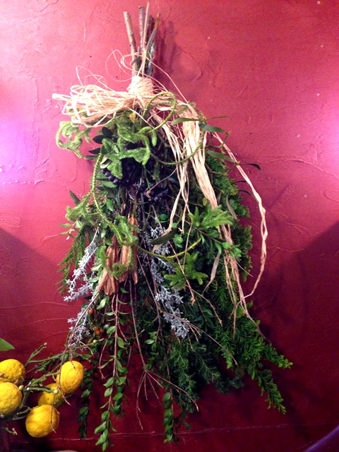 使用花材 : シャリンバイ 宿り木 ヒバ2種 その他ドライ