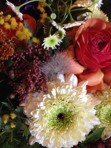 使用花材 : ゲイラックス ユーカリ ミモザ カーネーション ツルバキアスカビオサ