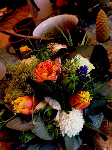 使用花材 : タニワタリ ロマネスコ ユーカリ オレガノ やつでの実 ラグラス