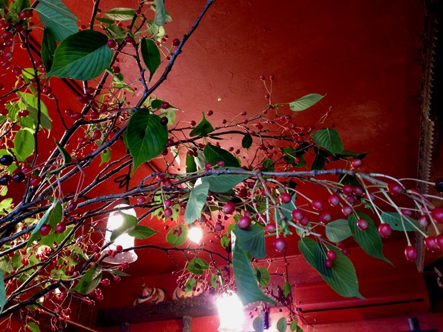 教室にはサクランボの木。