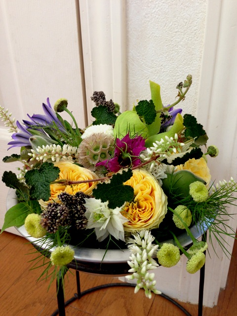 使用花材 : ニゲラ スカビオサ レモンラナンキュラ サラセニア(食虫植物) アガパンサス ときわいちご