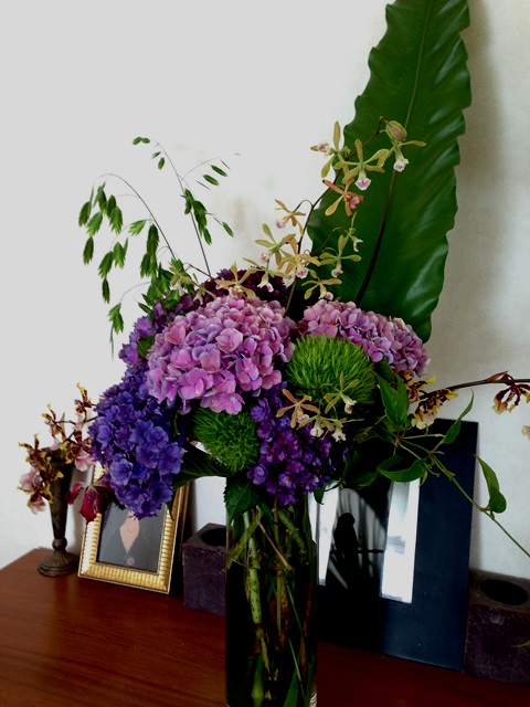 使用花材 : 紫陽花 タニワタリ リキュウ草 グリーンスケール らん グリーントリュフ
