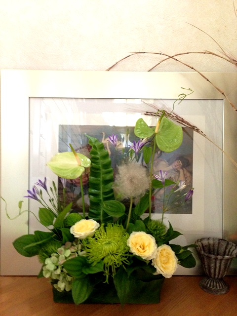 と尋ねられ 「グリーンベースで色数の少ないアレンジ」 と言ってみたら