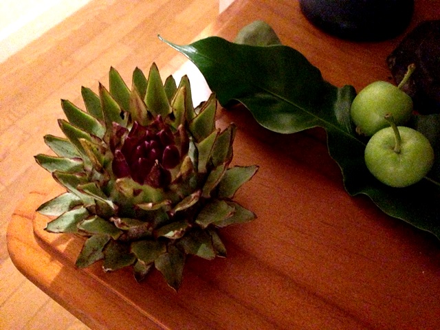 アレンジの周りにアーティーチョーク・りんご