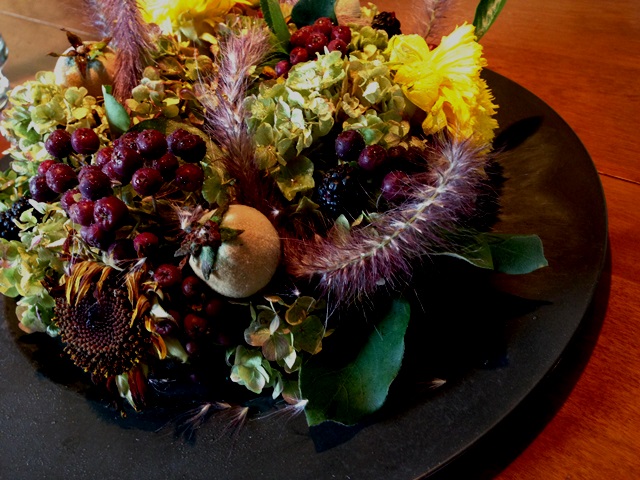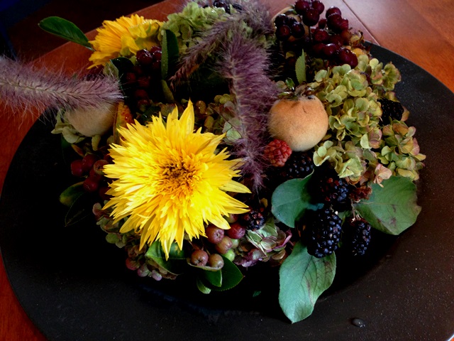 使用花材 : あじさい(かしわば)・ひまわり・ブラックベリー・アロニア(小実)