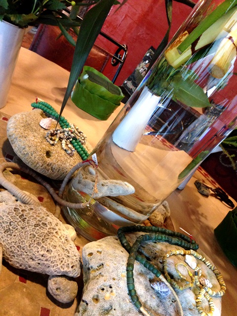 テーブルはサンゴ礁をイメージしたディスプレイ。