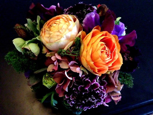 使用花材 : ラナンキュラス スカビオサ ムスカリ シラー クリスマスローズ(フェチダス)