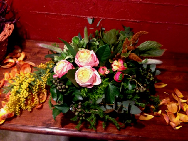 そんなイメージで花を挿す・・・・・整然としてなくてどことなく籠に投げ入れた感じで。