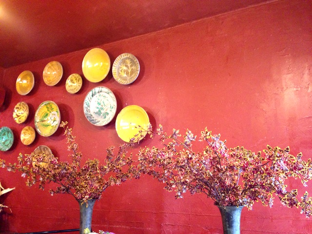 赤い壁に映える。