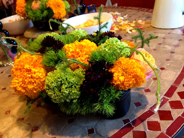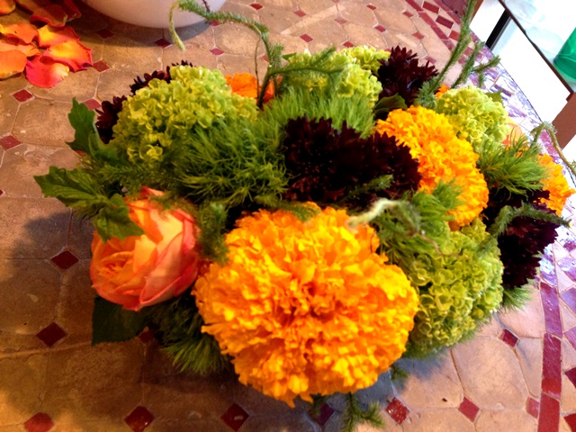 使用花材 : マリーゴールド(大輪八重) ラナンキュラス ビバーナム ベービーロマンチカ(ばら)