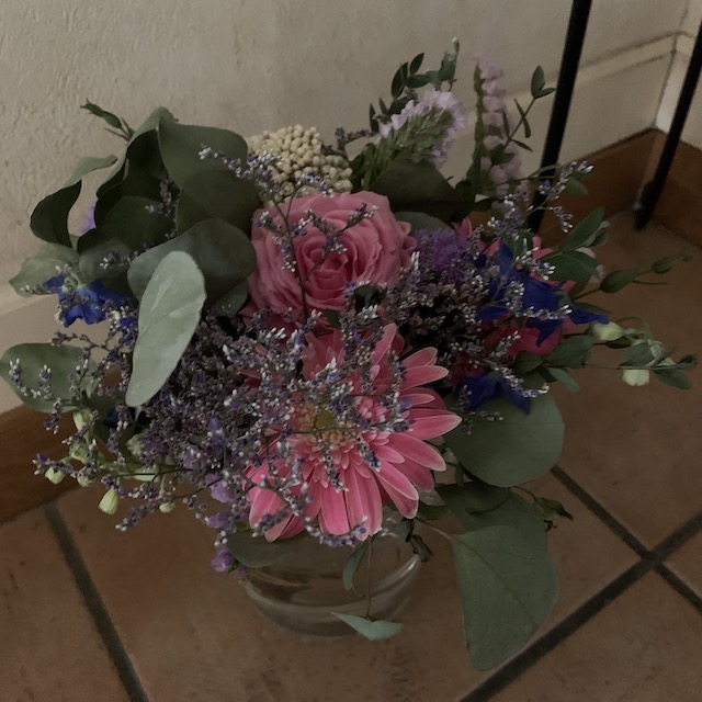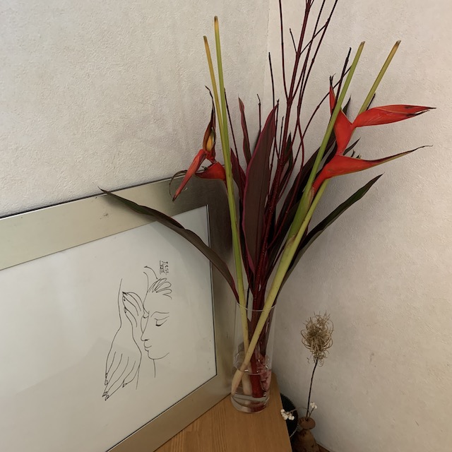 フラワーアレンジに入っていたものを花瓶の差しただけ。
