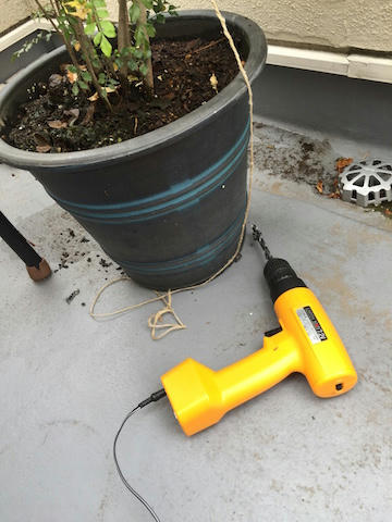 左手で重たくでかい鉢を抑え 右手でドリル!!
