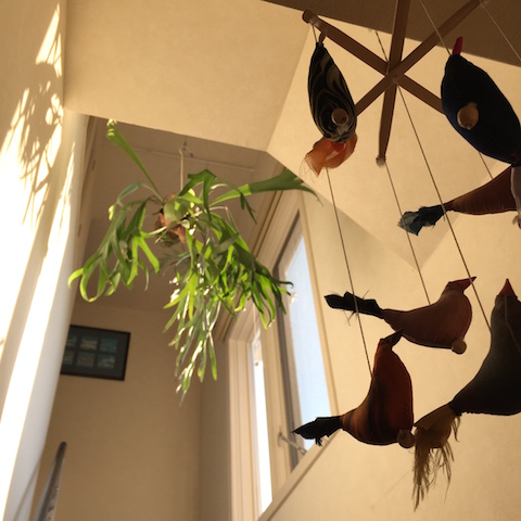 ベトナムの鳥のモビールがゆらゆら。