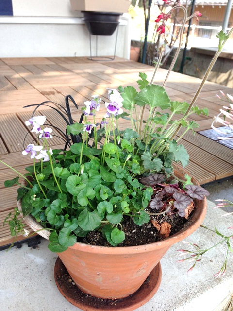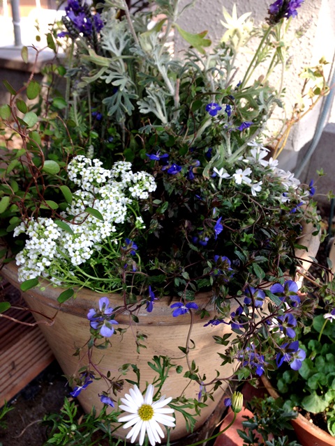 この鉢にはたっくさん植えこんだ。基本霜にあててはいけない鉢。
