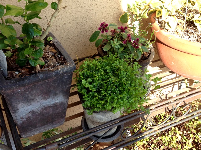 下:セラギネラ(ヒカリゴケ)に千日紅&白雪姫とかいう白い小花。
