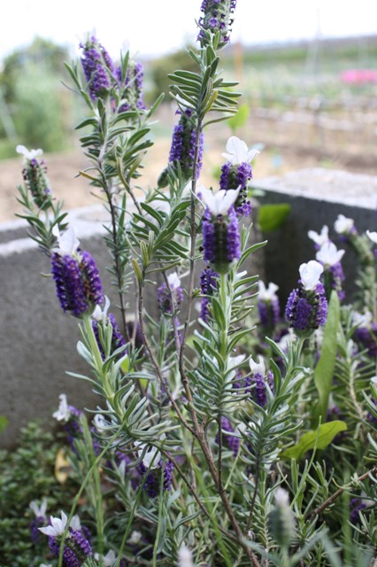 フレンチラベンダー:白 昨年秋に植え付け。
