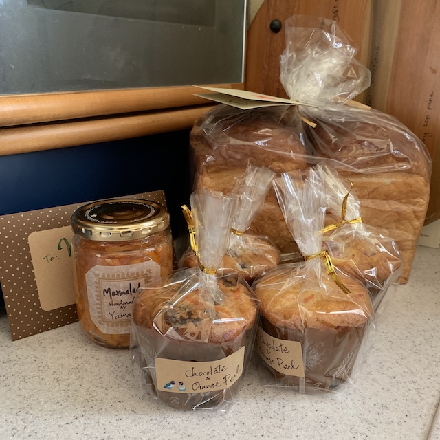 遠くに住む友人夫妻からは手作りのマーマレード・マフィンにパン。