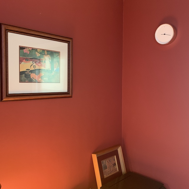 壁の色にゴーギャンの絵がよく映える!