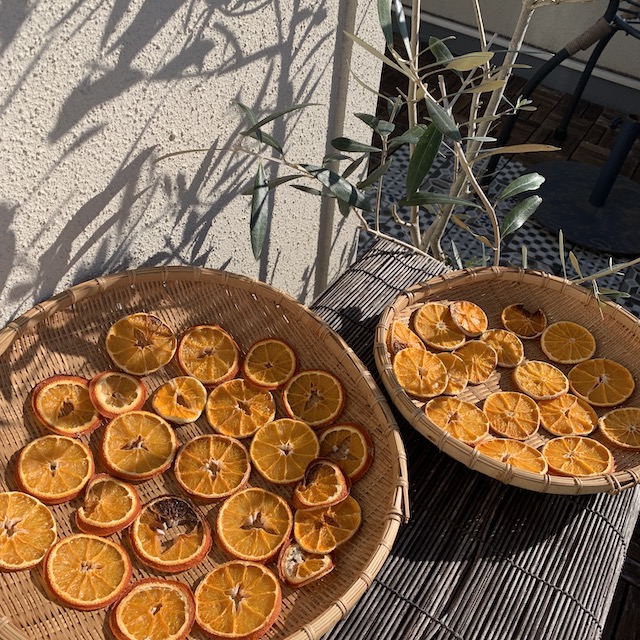 オレンジをスライスしてオーブンで低温長時間焼いて
