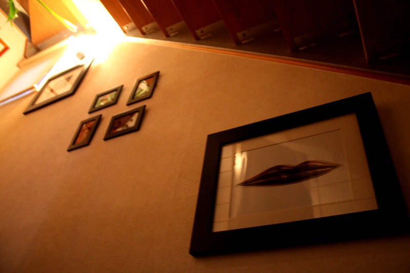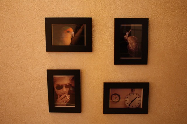 壁面 ランダムに大小さまざまなフレームで飾る。