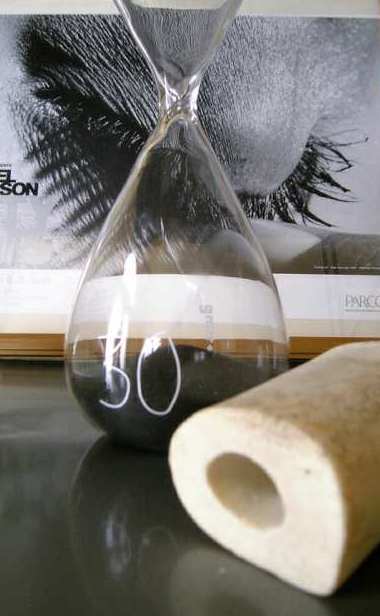 砂時計の横には・・・以前 pascal が噛んでいた骨を置きました。