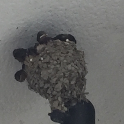 上を見ると今したいました〜ツバメの雛たちが!