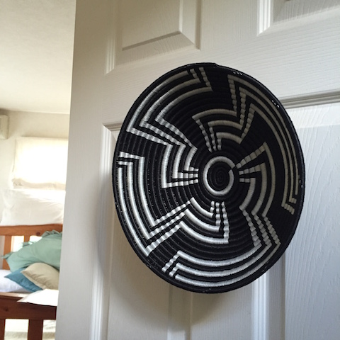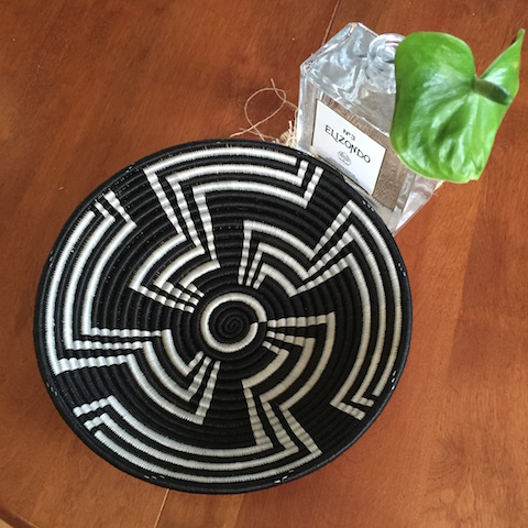 ルワンダの女性たちが編み上げた鮮やかな色彩のバスケット。