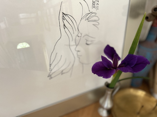 階段のピカソと紫濃い菖蒲