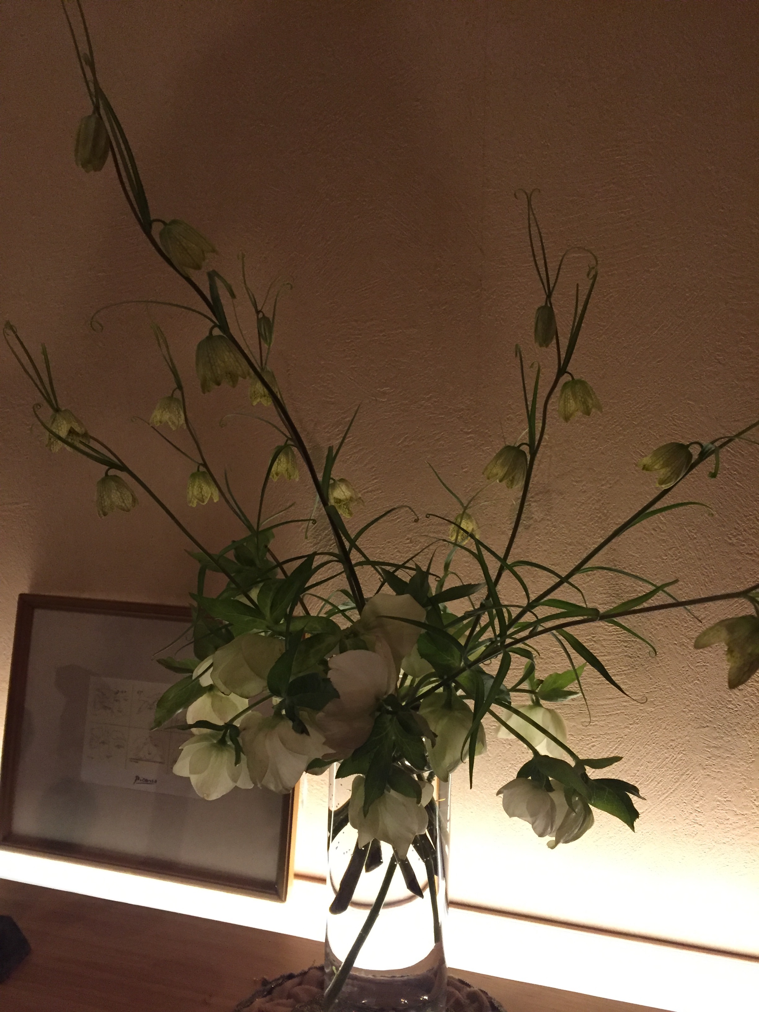庭にたくさん咲いているクリスマスローズと買ってきた名前不明の花を合わせる。