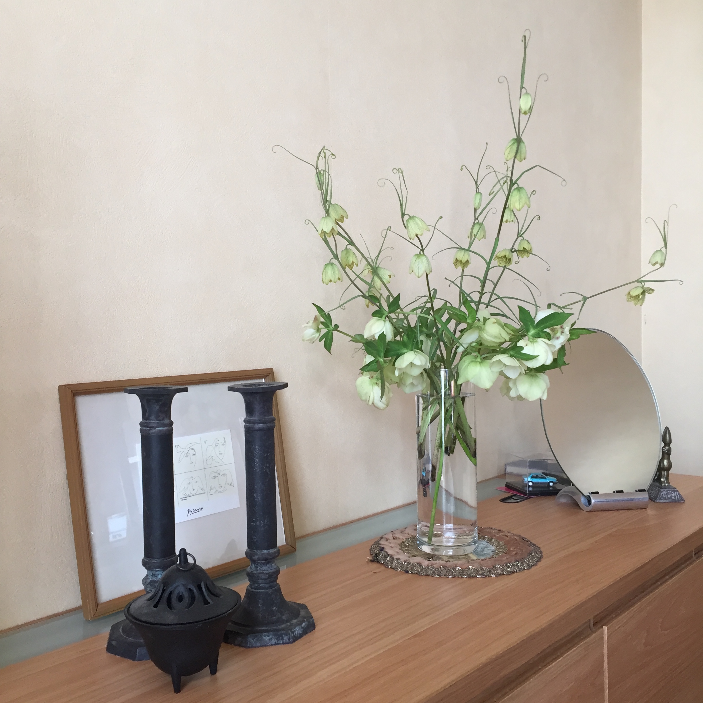 キャンドルスタンドと香炉で色を引き締めてみたけど・・・